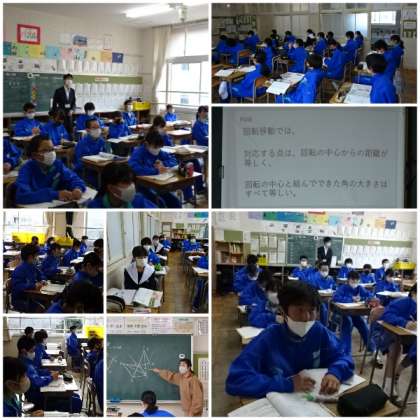 「図形の移動」の「回転移動」の学習です。回転移動の意味とその性質について学習しました。