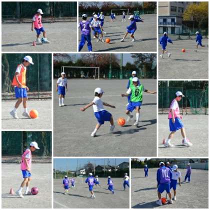 「サッカー」の学習ではドリブル練習とミニゲームを、「バスケットボール」の学習ではゲーム形式の練習を行いました。