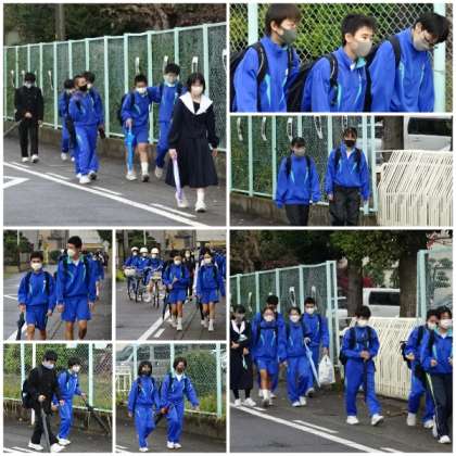 朝方の雨も登校時間にはやみましたが、雨傘を持って登校する生徒がちらほらいました。