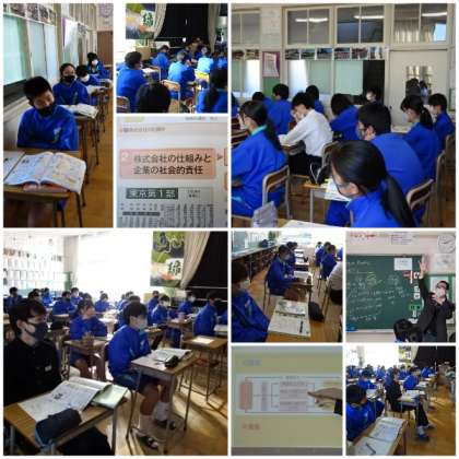 「株式会社の仕組みと企業の社会的責任」の学習です。株式会社の仕組みを理解するとともに、株価が変動する原因について考えました。