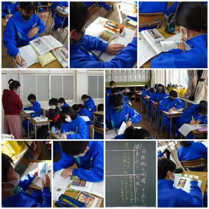 「根拠を明確にして魅力を伝えよう」の学習です。アートカードを基に鑑賞文を書きました。「見た感じ」「想像したこと」の二つの観点を明確にしました。