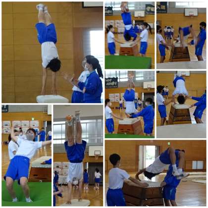 本日、最後の紹介は「跳び箱運動」の学習です。練習の成果が見られるようになってきました。回転系の技です。間近で見ると迫力があります。