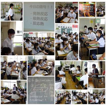 単元「化学変化と熱の出入り」の導入の時間にあたります。身の回りの熱を発生する現象にはどのようなものがあるか考えました。
