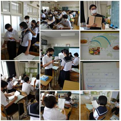 「Unit2 Food Travels around the World」の「Read and Think1」の学習です。ジョシュは朝美に借りた料理の文化についての本を読んでいます。本時は本文を読み、カレーの歴史や文化について、英語での質問に答えられるように読み取りを行いました。