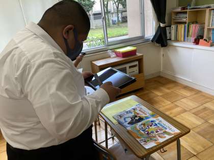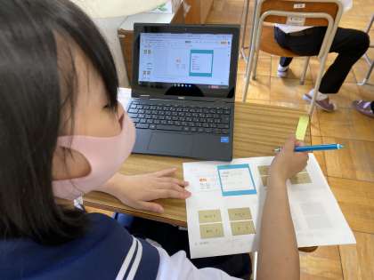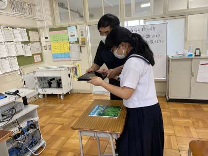本時の学活は、Chromebookを活用して、学校紹介のスライドを作成しました。7組は支援級の授業についての紹介を担当しました。各教科の授業に必要なものをリストアップして写真をとるチーム、授業内容を紹介するチームに分かれて作業しました。同じプレゼンテーションのシートを複数人で編集するなど、Chromebookを使いこなす姿が見られました。
