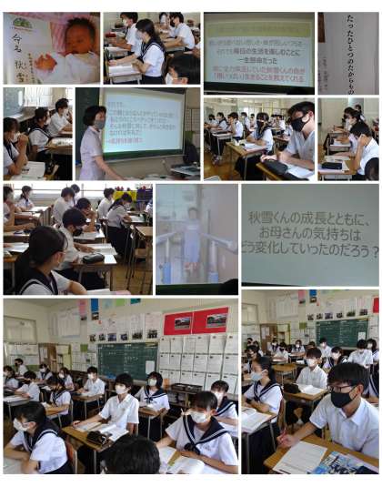 「たったひとつのたからもの」(内容項目:生命の尊さ)の学習です。障がいをもって生まれた秋雪さんが精いっぱい生きる姿を通して、生命の尊さについて考えを深めました。