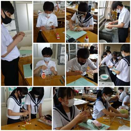 骨組みづくりと和紙に色をつける作業を行いました。