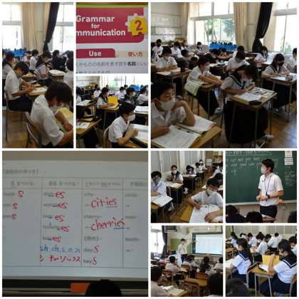 「Grammar for Communication2 名詞 〜ものについて伝えよう〜」の学習です。本時は名詞の複数形や発音の仕方について学習しました。語尾の発音が「シチューソックス」はesをつけることを知りました。