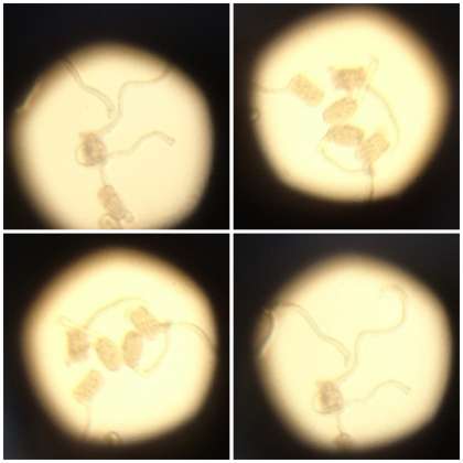 「有性生殖」の学習です。受粉した花粉の変化を調べました。ホウセンカの花粉が柱頭についたあと、花粉から管が伸びていることが分かります。いったい、どういうことが起きているのでしょうか?