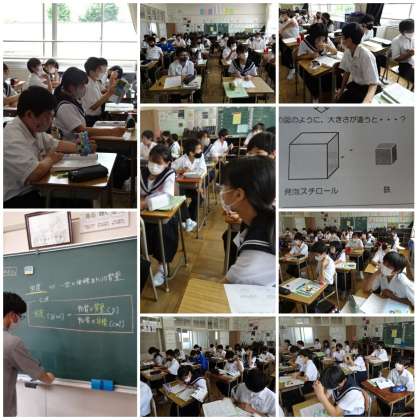 「密度」の学習です。本時の学習課題は「質量をもとに、物質を区別する方法を確かめよう」です。大きさの違う発泡ポリスチレンと鉄があります。鉄の方が重いということを証明にするにはどうしたらよいか考えました。