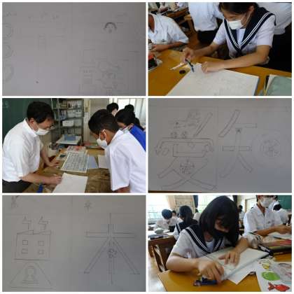 「文字っておもしろい」の学習です。番号はカラーコードです。着色する予定の色です。