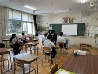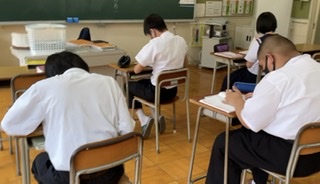 78組は今日から新しいお話、「大人になれなかった弟たちへ....」に入りました。このお話は、筆者の実話をもとにした、戦時中のお話です。小学校では「ちいちゃんのかげおくり」や「一つの花」が有名ですが、中学校にもこのような教材があります。支援級なりにこのお話を通して「戦争」を感じて、考えてもらいたいと思います。9組は週に一度の漢字の学習です。静かに黙々と取り組んでいます。