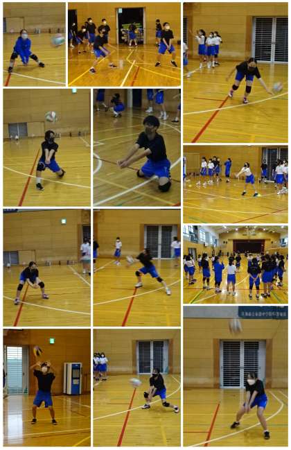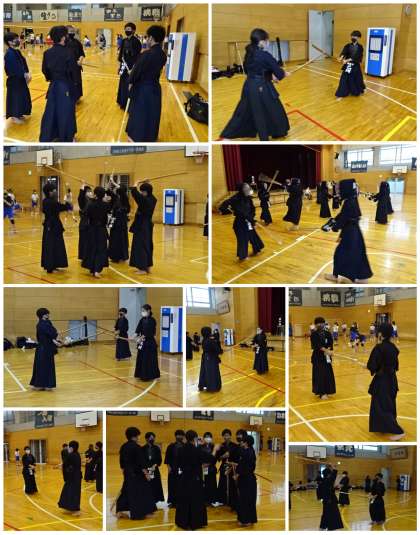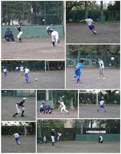 運動場では小雨の中、サッカー部と野球部が活動していました。