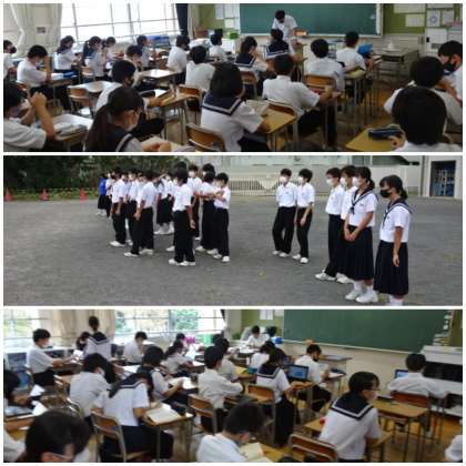 少しでも「布袋中の伝統」である応援を創っていく過程を見てみようと、外で見学する学級もあります。