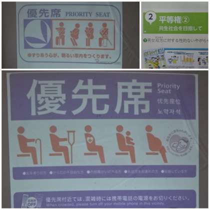 「平等権」の学習です。授業者は、ひと昔前の「優先席」の表示を見せます。画面を切り替え、現在の「優先席」の表示を見せます。何が変わったのか3つ以上見つけたら座ります。資料提示の仕方で生徒は俄然やる気を見せます。「過去」と「現在」で優先席を知らせる表示で何が変わったのでしょう?
