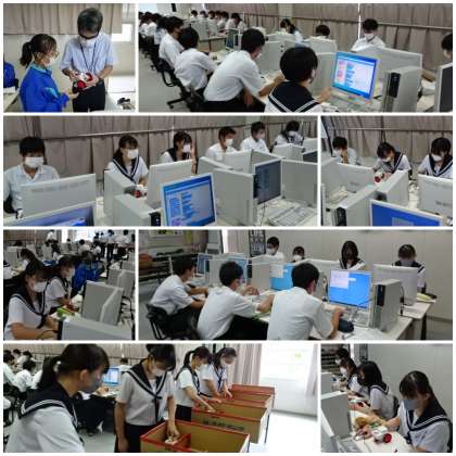 「計測・制御の技術」の学習です。本時は「ロボットカー」をプログラミングし、自動走行ができるように挑戦しました。プログラミングしたとおりに動作するか確認しながら進めました。
