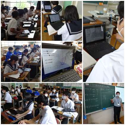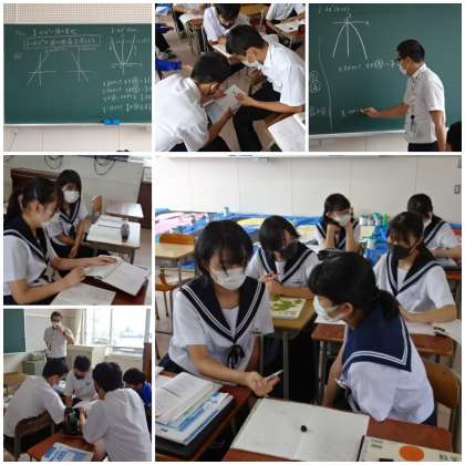 「関数y=ax^2の値の増減」の学習です。3年生の中で最も進度の速い学級です。