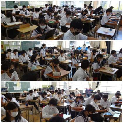 登校後、ピアノの設置してある特別教室が割り当てられている学級は、合唱練習を始めています。