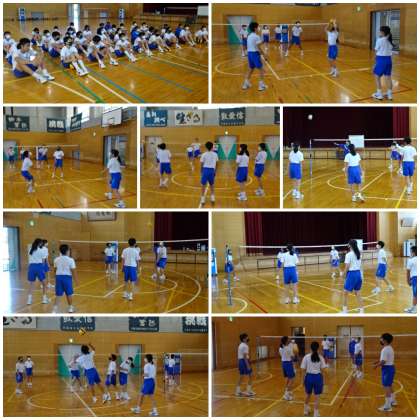 「バレーボール」では、「レシーブ」「トス」「スパイク」を基本とした三段攻撃を取り入れた「ミニゲーム」を行いました。