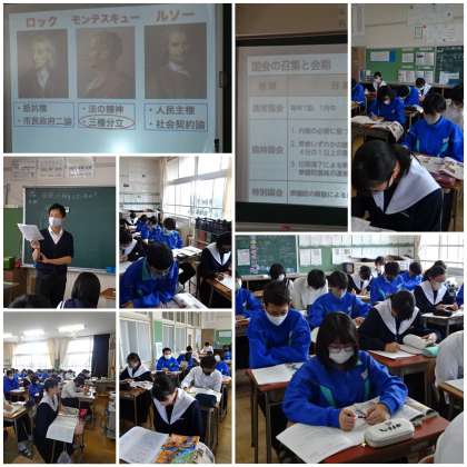 「国会の地位と仕組み」の学習です。資料集を基に、国会の地位や仕組み、種類について調べ、国会が「国権の最高機関」とされている理由を「民主主義」の観点から考えました。