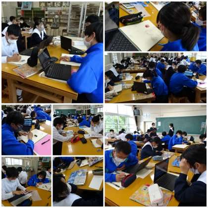 「点描画」の学習です。紙にペンで薄く下絵を描きます。絵が苦手な生徒はトレーシングペーパーを使って、描きたい写真や絵から輪郭を写し取っていきます。