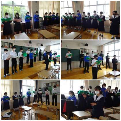 そこで、昨日、昼放課に3年生が合唱練習をしている場面を撮影しましたので紹介します。