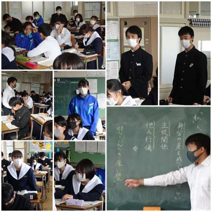 「故郷」の学習です。読みを深める場面です。見た目の「ルントウ」の変化などから「私」と「ルントウ」の現在の関係がどうなのか考えました。「ルントウ」と再開した場面で「私」が感じた「悲しむべき厚い壁」とは何か考えました。