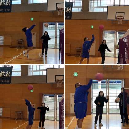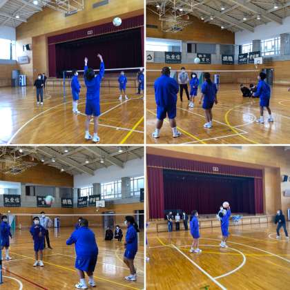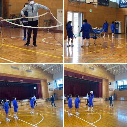 体育科の授業ではバレーボールに取り組んでいます。アタックの練習やミニゲームの様子です。後片付けも協力しています。