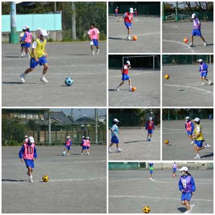 「サッカー」と「バスケットボール」の学習です。「サッカー」では、ペアでランニングパスからのシュート練習を、「バスケットボール」ではミニゲームの場面を参観しました。