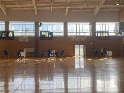 本時の体育はバスケットボールでした。写真は、ドリブル練習をしている様子です。ドリブルをしながら進みたい方向に進むのは難しいですね。今日は、このあとパス練習やシュート練習をしてゲームを行いました。最近また暖かくなって、体育のあとは顔を真っ赤にして教室に戻ってきます。