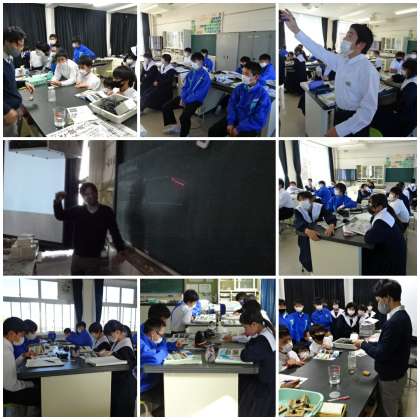 新しい単元「身近な物理現象」の学習です。本時は小学校で学んだことを簡単に復習し、「光の性質」について考えました。光がどのように進んでいるかを目視するため、教科担任が生徒の考えを拾いながら、レーザーポインターを使って演示しました。