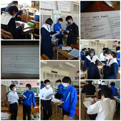 「Unit5 Legacy for Peace」の「Scene2」の学習です。ジョシュと朝美が「ガンディー」について話している場面です。本時は人について説明を加える関係代名詞「who」の使い方を学びました。