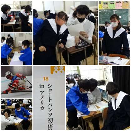 「ショートパンツ初体験 in アメリカ(内容項目:相互理解、寛容)」の学習です。自身の障がいを隠すことがあたりまえと思っていた大日坊邦子さんの「心の壁」を破った出来事を題材に、「個性を表現する」「個性を受け入れる」とはどういうことか考えました。
