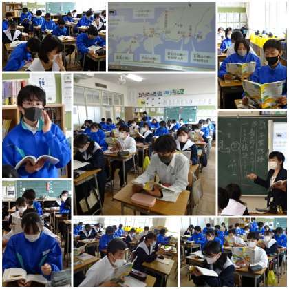 教科担任はその情景を黒板に殴り書きし、音読をしていきます。生徒も教科担任に合わせて声に出し、独特の調子とリズムを楽しみました。