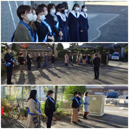 今朝はPTA指導部の皆様によるあいさつ運動がありました。