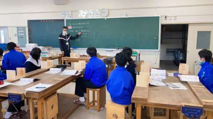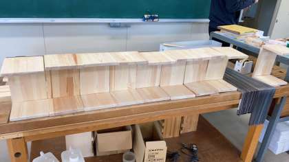 「かんたんな本棚をつくろう」の学習です。本時は、釘打ちによる組み立てを行いました。げんのうは慎重に扱わないとけがをする恐れがあるため、最後まで集中して頑張っていました。