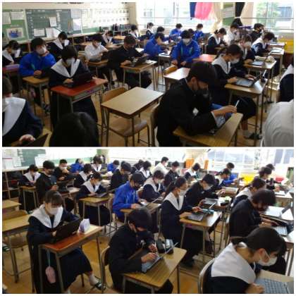 5校時に行う数学科コンクールに向けて、Chromebookを使って「Google classroom」に貼り付けてある練習問題に取り組んでいます。