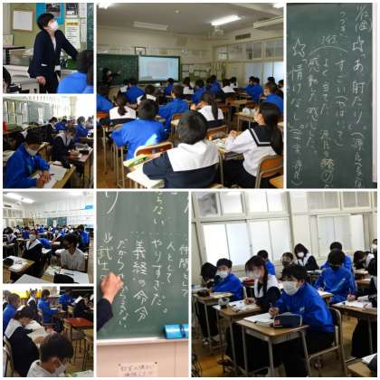 「扇の的」の学習です。本時はクライマックスの場面で登場人物の言動からそれぞれの心情を考えました。「あ、射たり。」と言った人と、「情けなし。」と言った人の気持ちについて話し合いました。