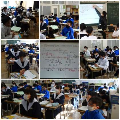 「水溶液の濃度」の学習です。小学校の算数で学んだ割合と百分率を踏まえ、質量パーセント濃度について学びました。式を立てても計算する段階で間違いが起きないように、数多くの問題に触れる必要があります。