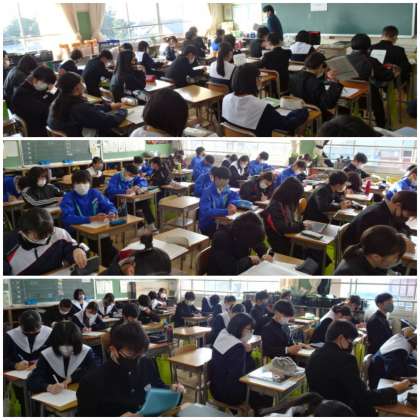 昨夜は3年生職員が遅くまで生徒の書いた願書の下書きを点検していました。今朝、点検後の願書を生徒に返却しました。ネット出願の生徒は20日(月)にプリントアウトしたものを提出します。
