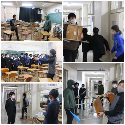 先生の指示ですばやく教室の後方に避難する生徒の動きなど、臨場感あふれる様子が全校生徒に伝わったのではないでしょうか。