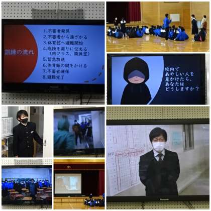 本日、授業後に全校で不審者対応の避難訓練を行いました。
