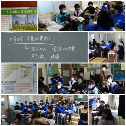 「新しい産業と生活文化」の学習です。本時の学習課題は「なぜアメリカに多くの人々が集まるのだろう」です。音楽、ファッション、演劇、スポーツなどを通して、人はどうしてアメリカを目指すのでしょう?世界的な企業や、世界を引きつけるアメリカの文化について学びました。