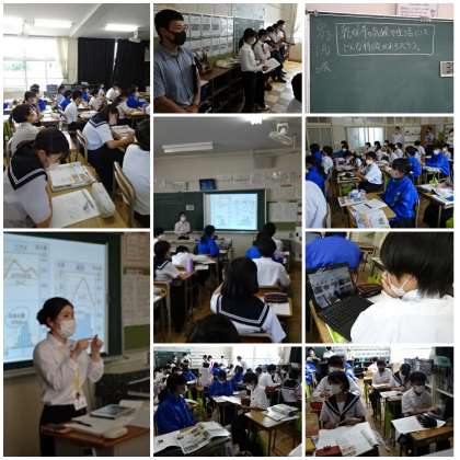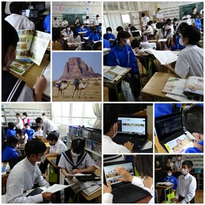 授業の前半は、ニアメと東京の雨温図を比較し、ニアメの特徴を読み取りました。授業の後半は、乾燥帯に属する国々の環境条件や人の営みに着目して、人々の生活の特色を、ペアやグループで伝え合いました。