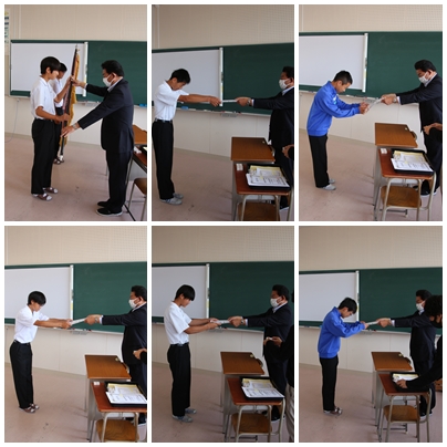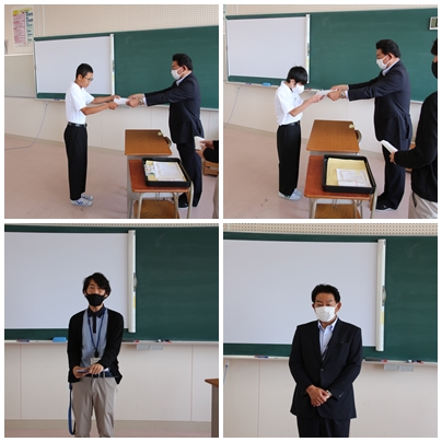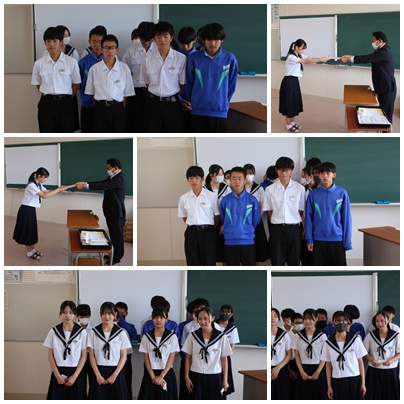その後、生徒指導の先生から登下校について、熱中症対策についてなどお話があり、校長先生からは管内陸上大会の熱戦の様子、学級訓紹介、熱中症のリスクとマスクの関係性、期末テストについてなどのお話がありました。