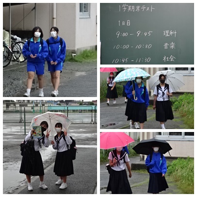 雨天での登校となりましたが、テストでは学習の成果が発揮できるとよいですね。