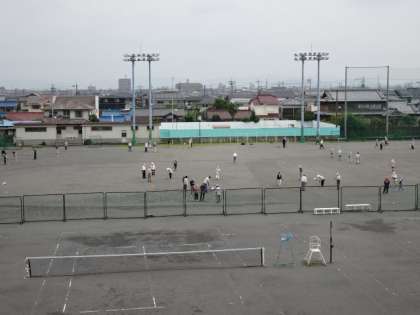 運動場では、午前中、布袋地区老人クラブ連合会の皆さんがグラウンドゴルフを楽しんでいます。3年ぶりの開催ということで、朝早くから地域の皆さんが中学校の運動場へお越しいただいています。