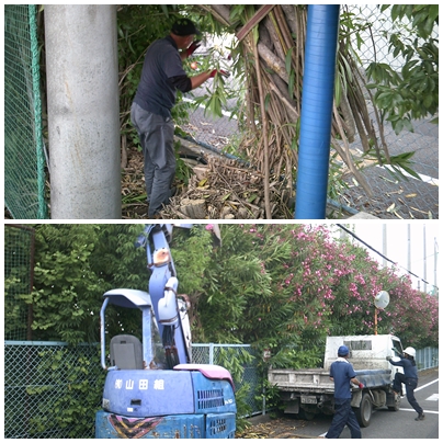 グランド東側夾竹桃伐採開始