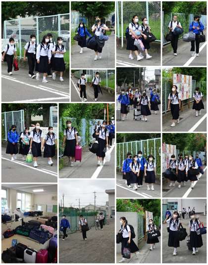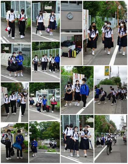 今朝は3年生が修学旅行に向けて大かばんを持って登校する姿が見られました。