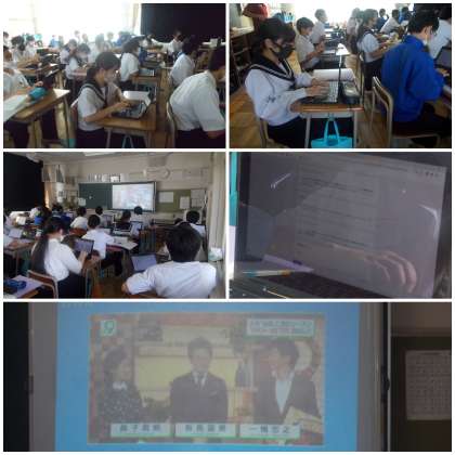 テレビニュース制作の裏側で、キャスターのコメント一言一言を吟味する番組スタッフの様子を映像教材で視聴しました。「事実をそのまま伝えるコメントがよいのか」「専門家の考えを取り入れた情報を伝えるのがよいのか」、報道のあり方を考えながら、メディア情報について学習しました。